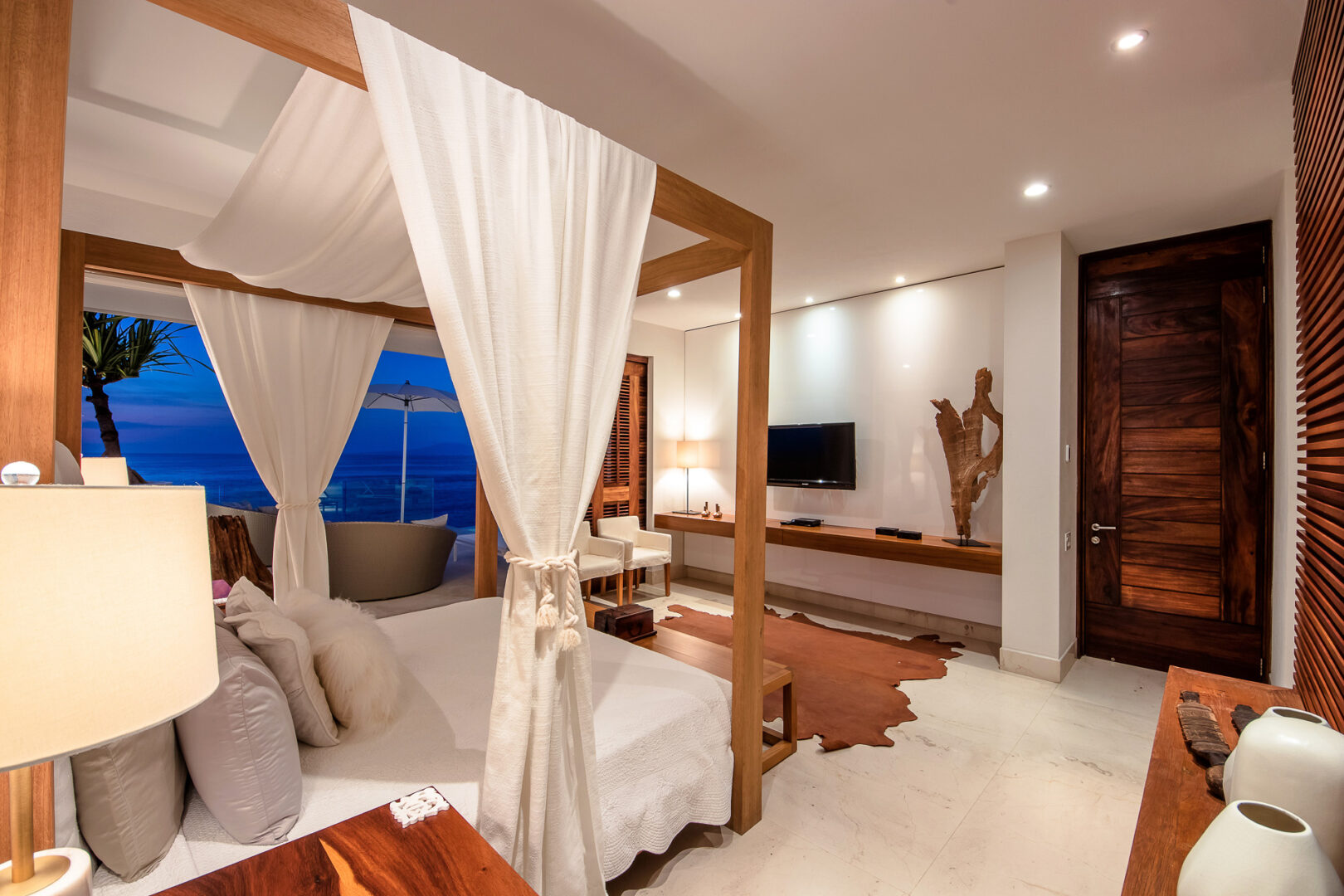 5. King size bed, private bath, outdoor shower, ocean view and common terrace.